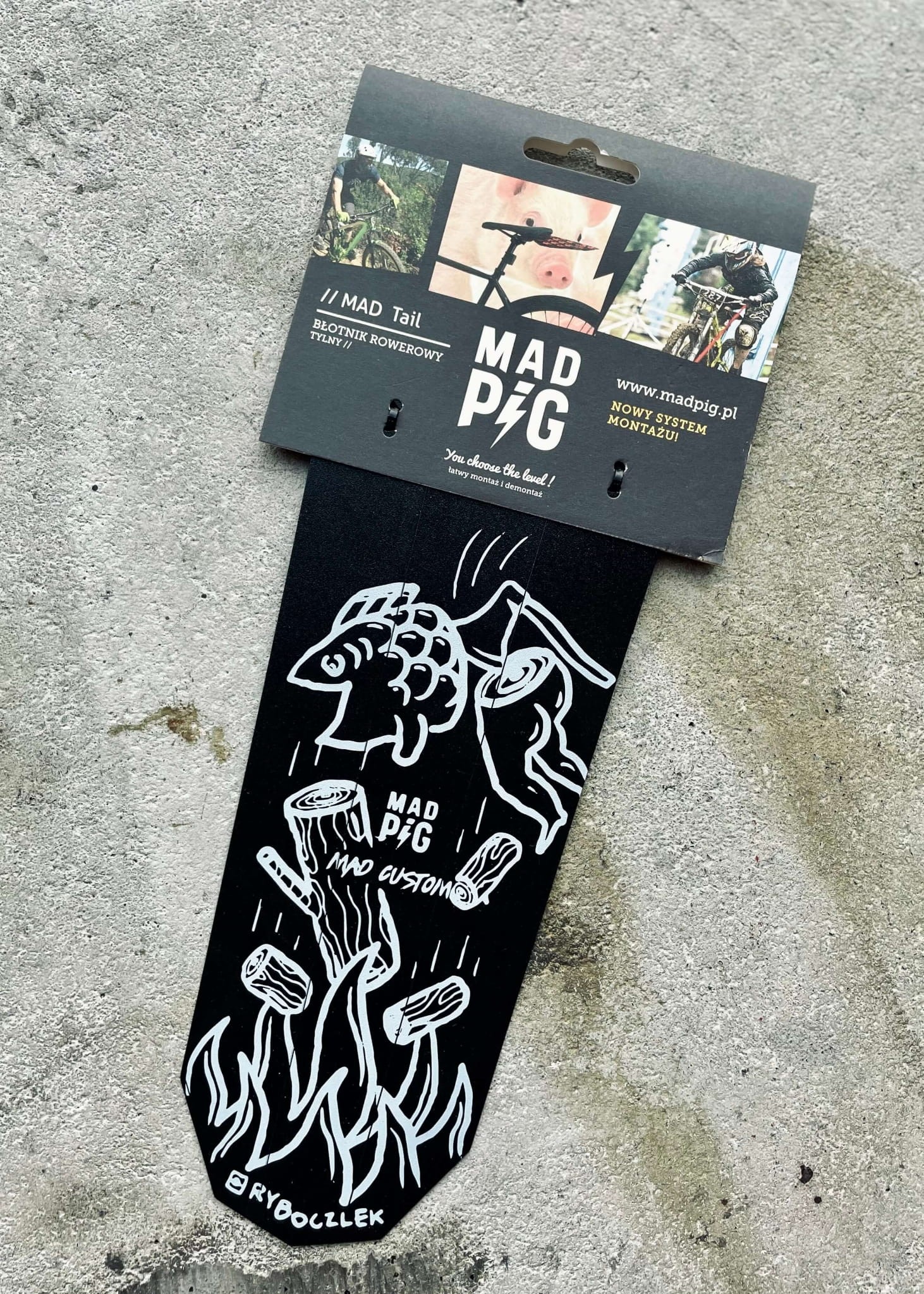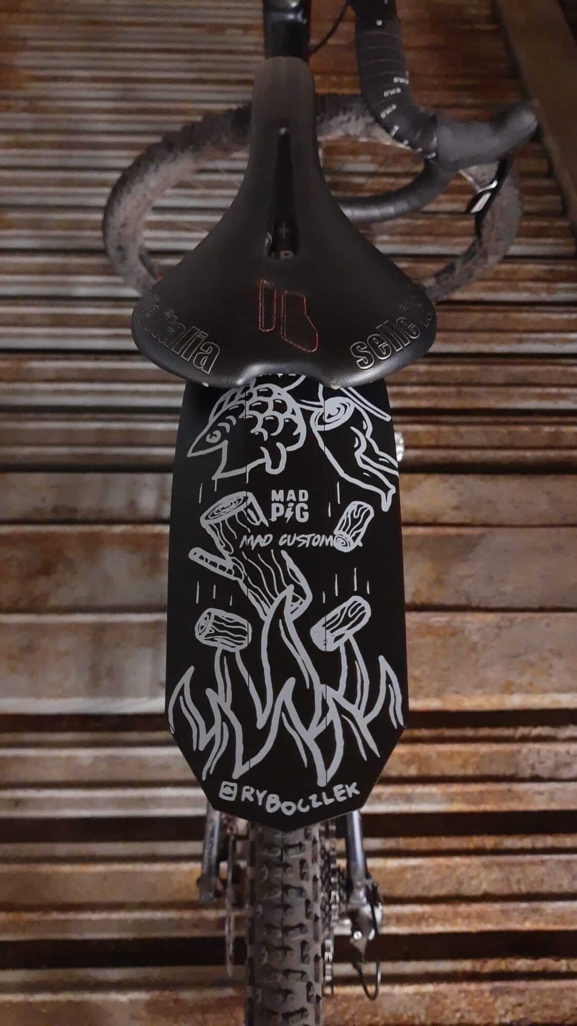 Limitowana edycja Mad Bacon "RYBOCZLEK". Błotnik tylny testowany w warunkach letnich i zimowych, w warunkach naturalnych, gdzie kamienie, piach i błoto zweryfikowały jego przydatność. Waga produktu Mad Bacon wynosi ok. 25 gram, co sprawia, że nadaje się do ścigania dla zawodników jak i fanatyków.
