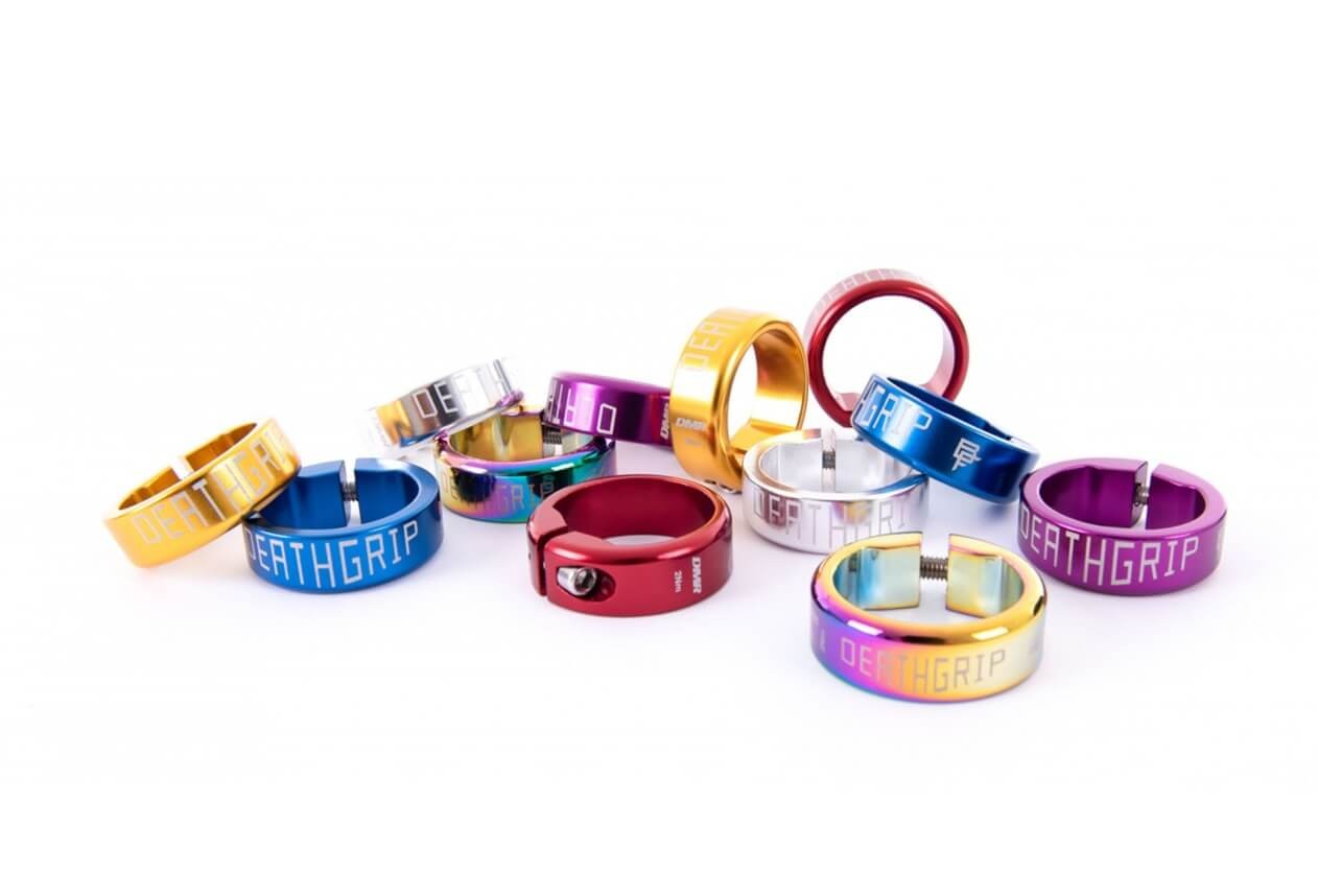 DMR Deathgrip obejma o wyjątkowym wykończeniu. Każde opakowanie zawiera anodyzowane aluminiowe obejmy, które pozwalają spersonalizować Deathgrips - najlepsze chwyty kierownicy dla roweru. W zestawie załączone śruby zaciskowe ze stali nierdzewnej.