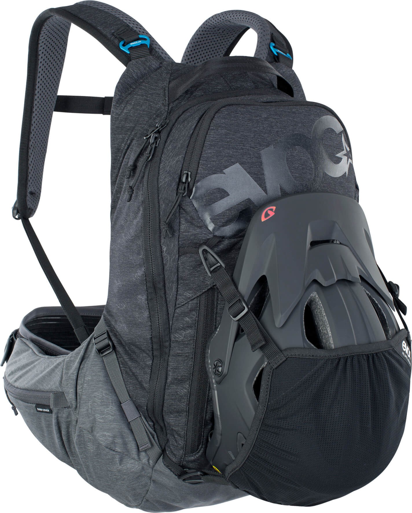 EVOC „Body Hugging” charakteryzuje to, że środek ciężkości plecaka jest umieszczony jak najbliżej ciała, a obciążenie jest rozłożone na dużej powierzchni i przenoszone na biodra. Zoptymalizowane połączenie pasów naramiennych i szerokie pasy biodrowe, które „wychodzą” z tylnej części, zapewniają, że plecak pozostaje pewnie na swoim miejscu podczas każdego rodzaju aktywności - dla większego komfortu i kontroli.