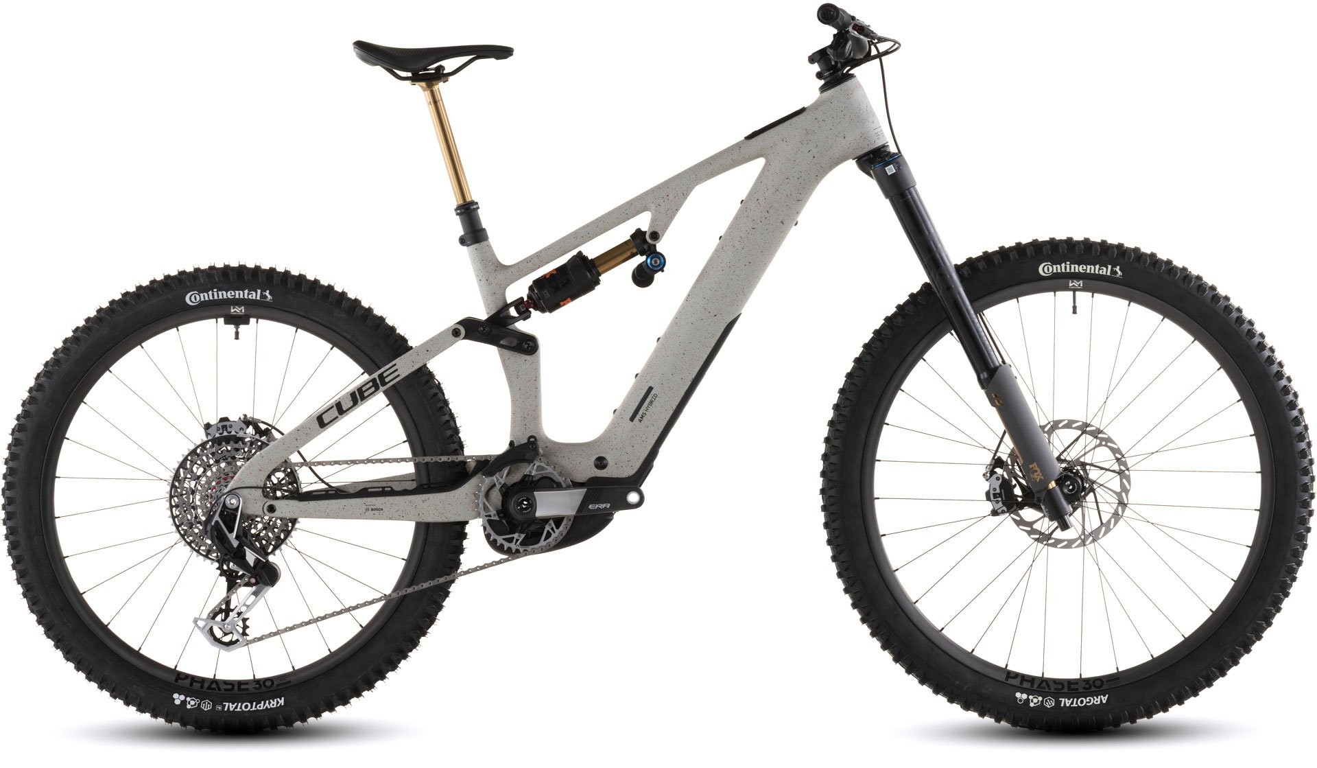Wyjątkowy rower zasługuje na wyjątkowe komponenty. AMS Hybrid 177 C:62 Super TM 600X wyposażono w mocny i wszechstronny napęd Bosch CX-R. Moment obrotowy do 100 Nm, moc szczytowa 750 W i akumulator 600 Wh gwarantują energię potrzebną do zdobywania kolejnych szczytów bez ograniczeń. Zawieszenie tworzą widelec Fox Podium i damper Float X2 Factory o skoku 170 mm, współpracujące z kołami Newmen Phase 30 i oponami Continental Argotal / Kryptotal 2,4". Za hamowanie odpowiadają hydrauliczne tarczówki Sram Maven Ultimate, a zdalnie opuszczana sztyca zwiększa kontrolę w każdych warunkach. Precyzyjna przekładnia Sram XX Eagle Transmission z karbonową korbą RaceFace Era dopełnia całość. Rower gotowy na najtrudniejsze górskie trasy.