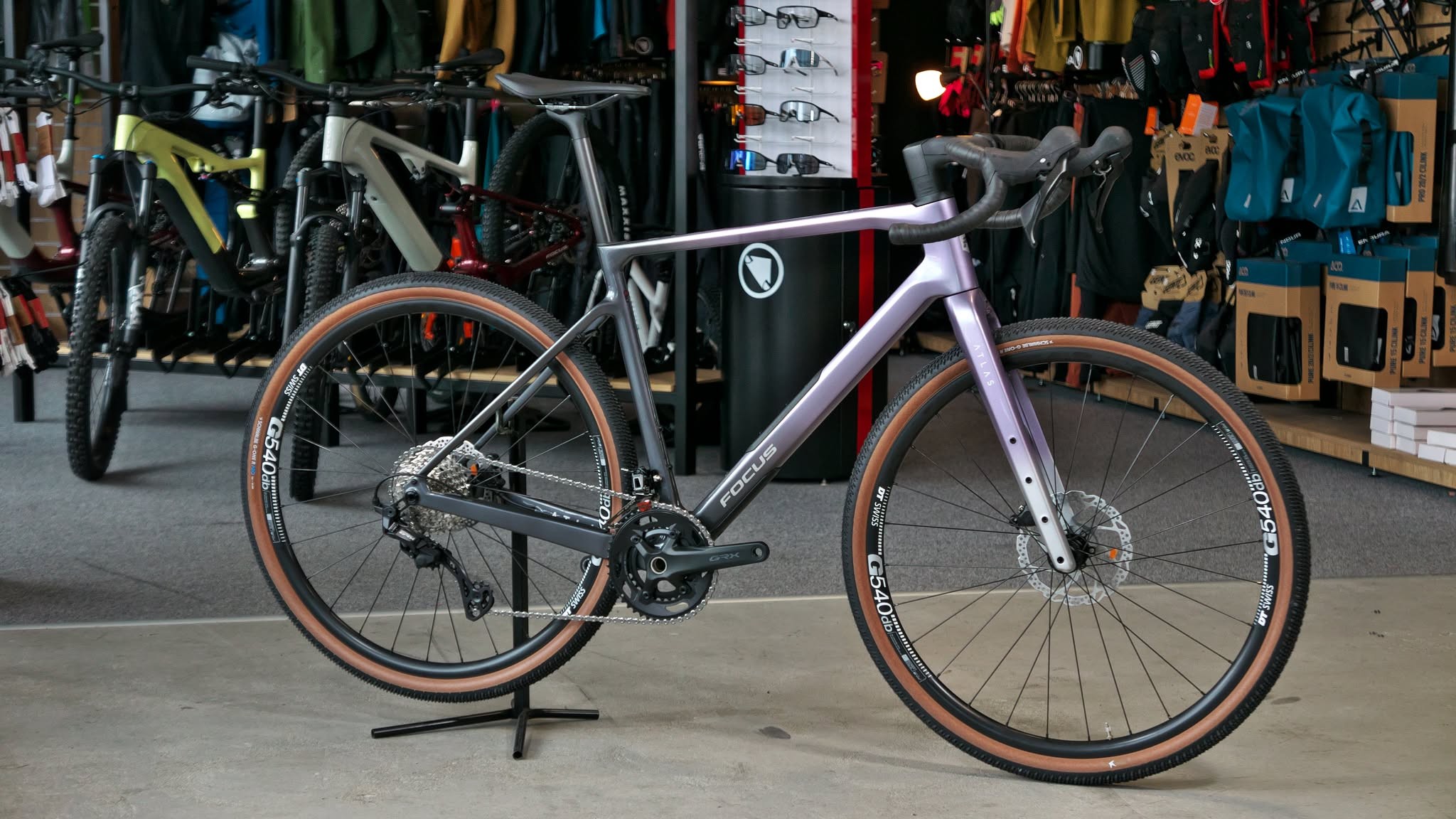 Focus Atlas 8.7 to karbonowy rower gravel stworzony do długich tras, szutrowych przygód i bikepackingu. Rama z włókna węglowego łączy sztywność z komfortem, a zintegrowany schowek Prep Pocket z torbą Prep Pack pozwala przewozić narzędzia i niezbędne drobiazgi bez dodatkowych toreb na zewnątrz. Za napęd odpowiada Shimano GRX 2x12 z korbą 46/30 i kasetą 11–36, czyli zakres przełożeń idealny zarówno na podjazdy, jak i szybkie dojazdy po asfalcie. Koła na obręczach DT Swiss G540 i piastach Alexrims oraz fabryczne opony 45 mm tubeless-ready zapewniają trakcję i stabilność na luźnych nawierzchniach.