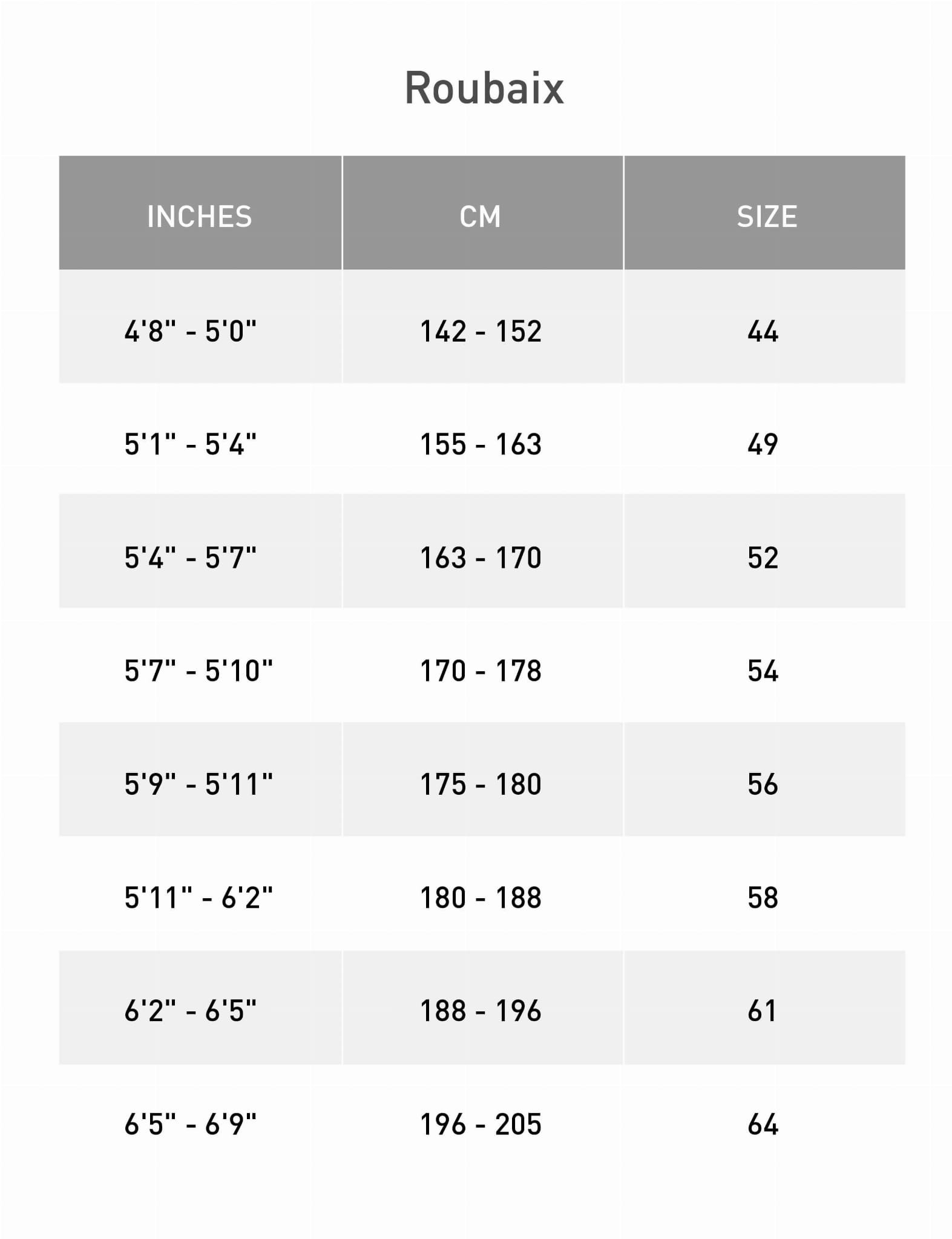 | Crank Length | 165 | 165 | 170 | 172.5 | 172.5 | 175 | 175 |