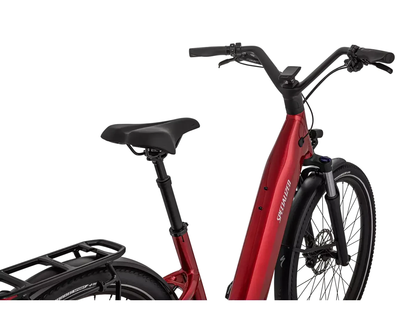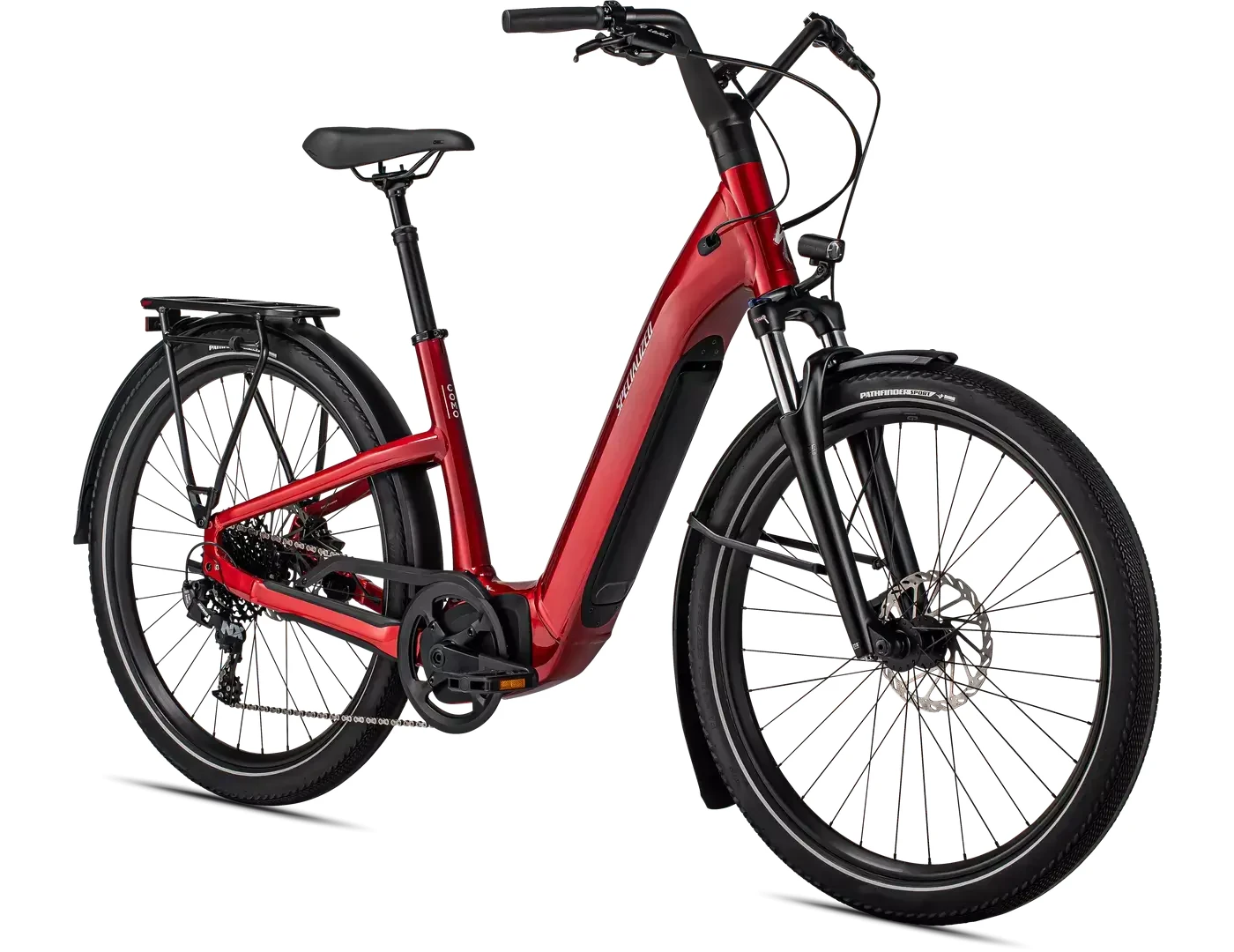 - Wyposażony w błotniki DRYTECH, przednie i tylne światła LED oraz tylny bagażnik HD o udźwigu 27 kg. Bagażnik jest kompatybilny z fotelikami rowerowymi dla dzieci, a rower jest również przystosowany do ciągnięcia przyczepy z osią przelotową.