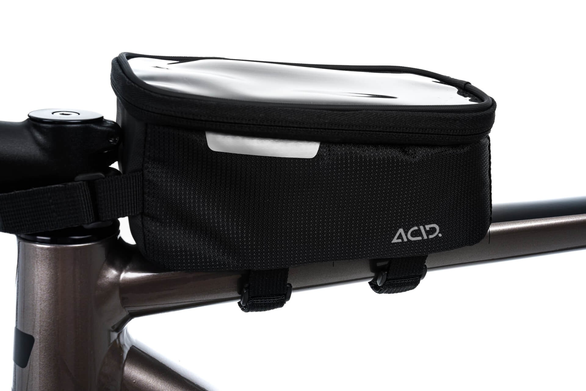 Torba Cube ACID Top Tube Bag CMPT 1 pozwala przechowywać wszystkie najpotrzebniejsze rzeczy w zasięgu ręki, bezpośrednio podczas jazdy na rowerze. Szybko i łatwo mocuje się ją do ramy za pomocą rzepów, a duża komora na smartfon z folią dotykową świetnie sprawdza się do nawigacji przy użyciu telefonu. Od miejskich ulic po weekendowe wycieczki — to idealny, praktyczny dodatek.